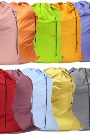 - 【Easy Closure Design】The sides are sewn with tear resistant Extra-tough double-stitched seam construction. The top is wrapped in white cloth strips to strengthen stitching,increase load and make it more beautiful.A locking drawstring closure will keep all your stuff out of spilling off during the transport.Tie the knot after close can keep the clothes more safe and secure in the bag while carrying laundry.